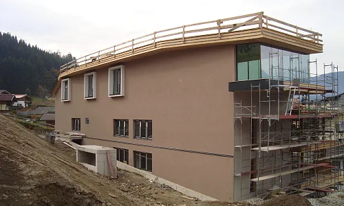 Während die Baugrube ausgehoben wurde, sind die Arbeiten im Restaurantbereich und beim Personaltrakt schon fast abgeschlossen gewesen. Danach folgte die Tiefgarage und der Hoteltrakt mit dem Wellnessbereich im Dachgeschoss.